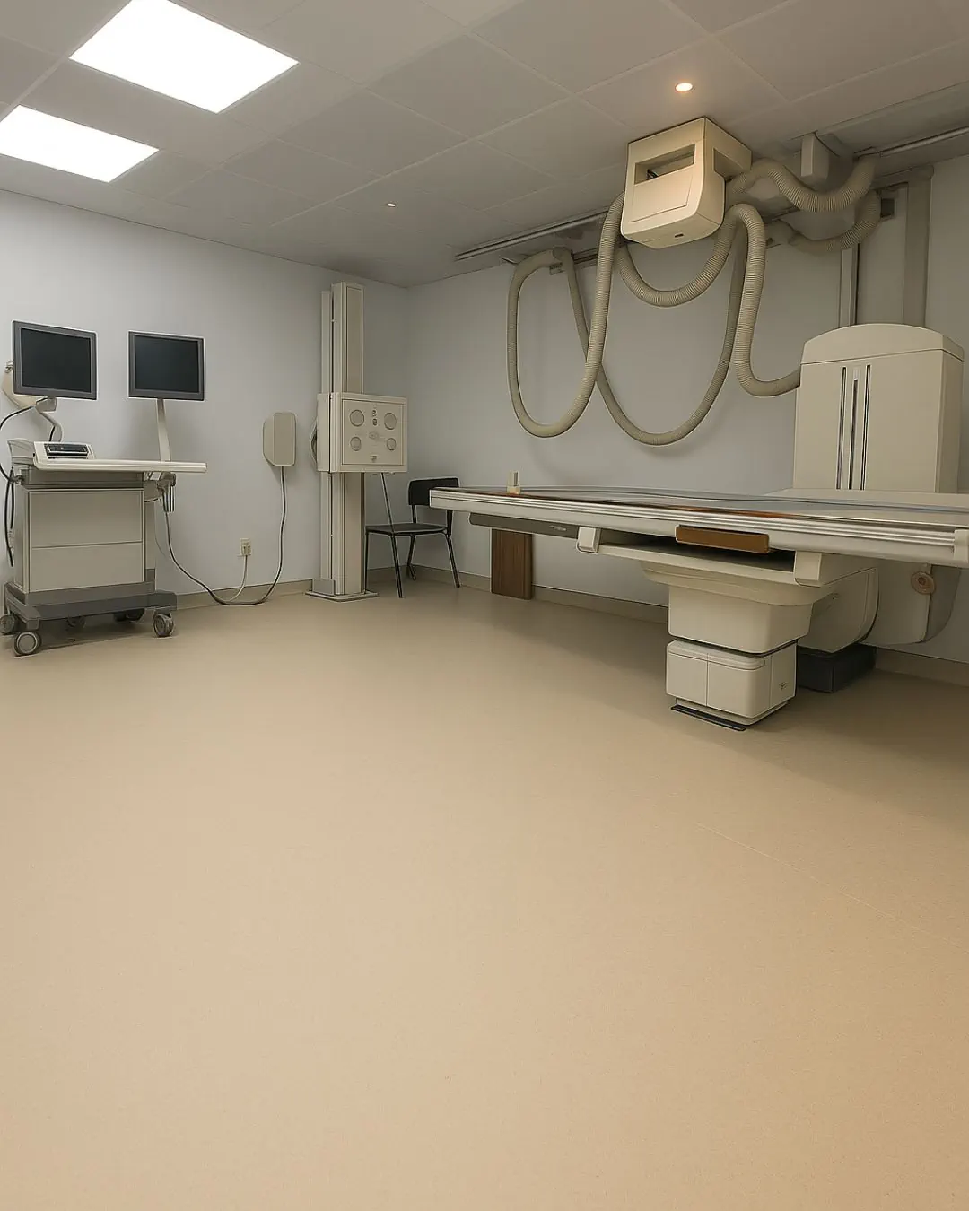 Pisos vinílicos homogéneos disipativos, ideales para proteger equipos de diagnóstico y garantizar condiciones seguras.