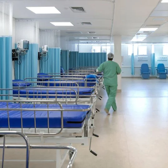 Pisos vinílicos homogéneos para confort, seguridad y fácil limpieza en habitaciones de pacientes.